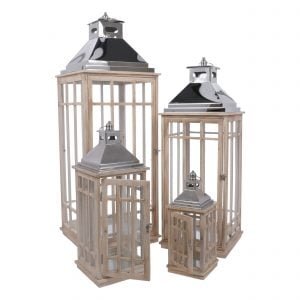 Lanterna metallo e legno set 4pz