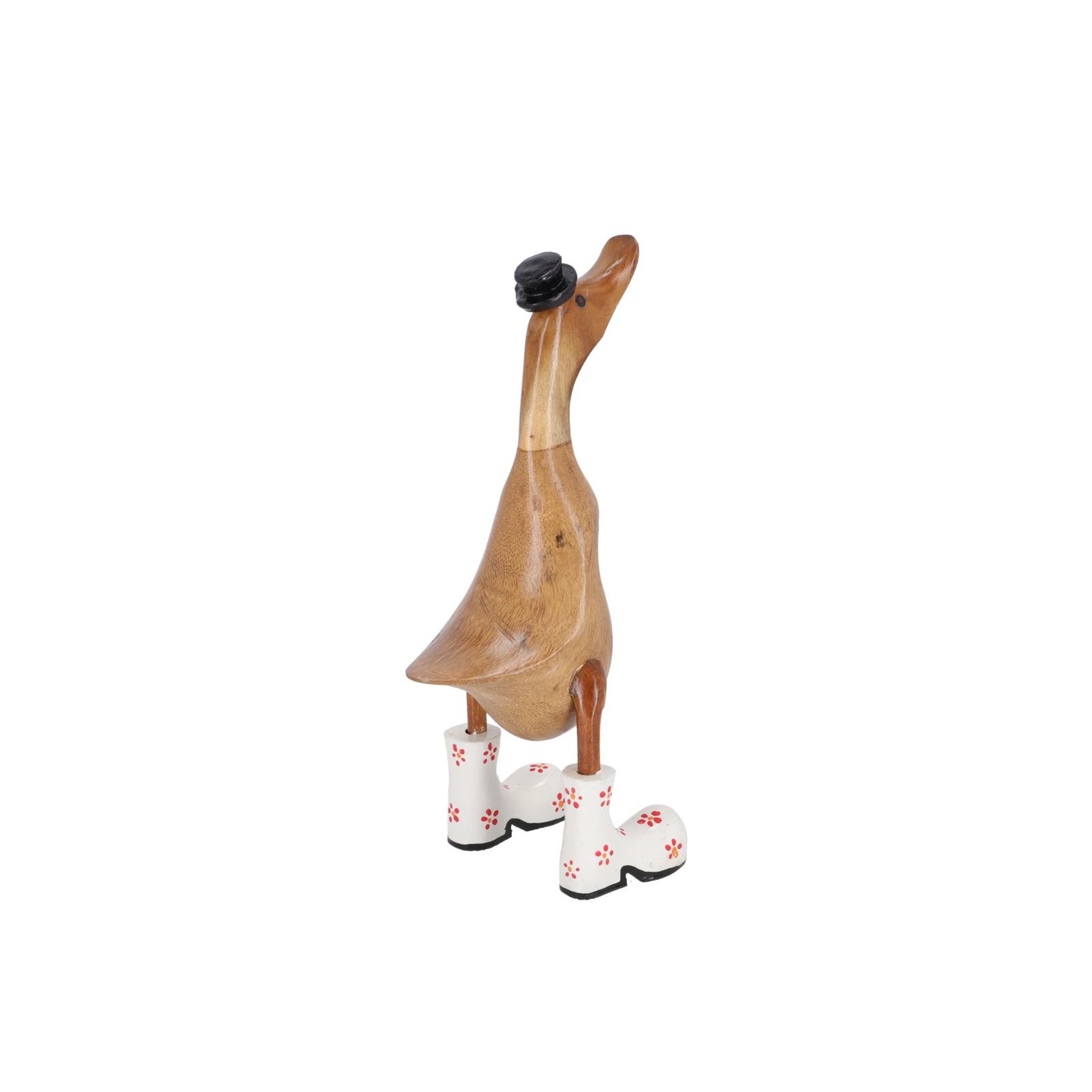 PAPERA IN LEGNO STIVALI BIANCHI FIORI ROSSI 35CM