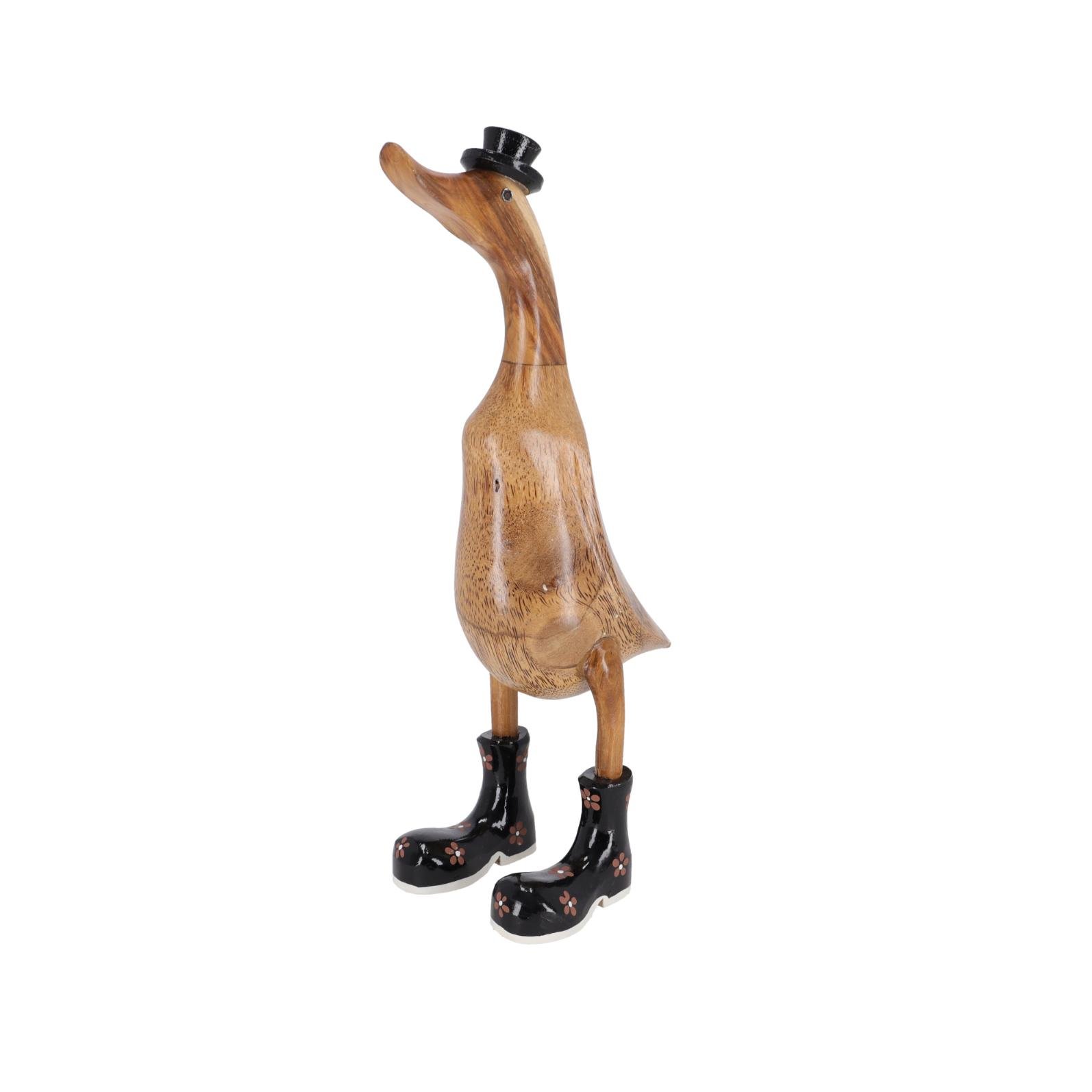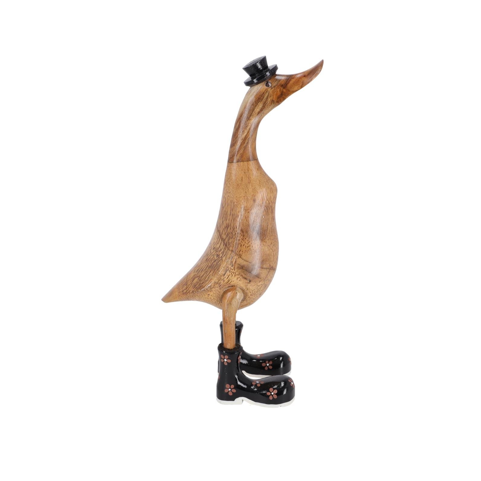 PAPERA IN LEGNO STIVALI NERI FIORI MARRONI 40CM