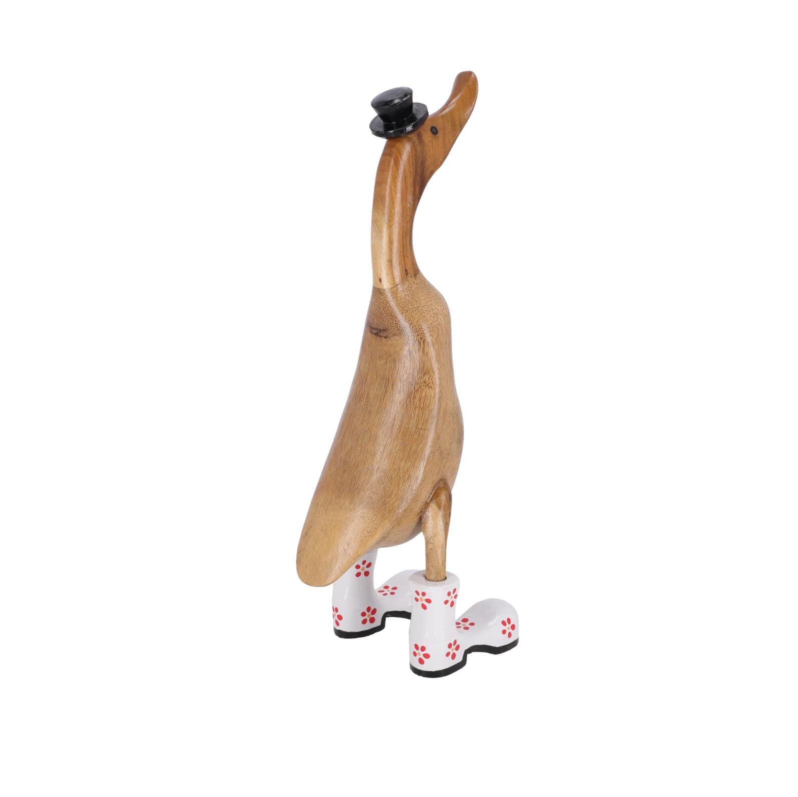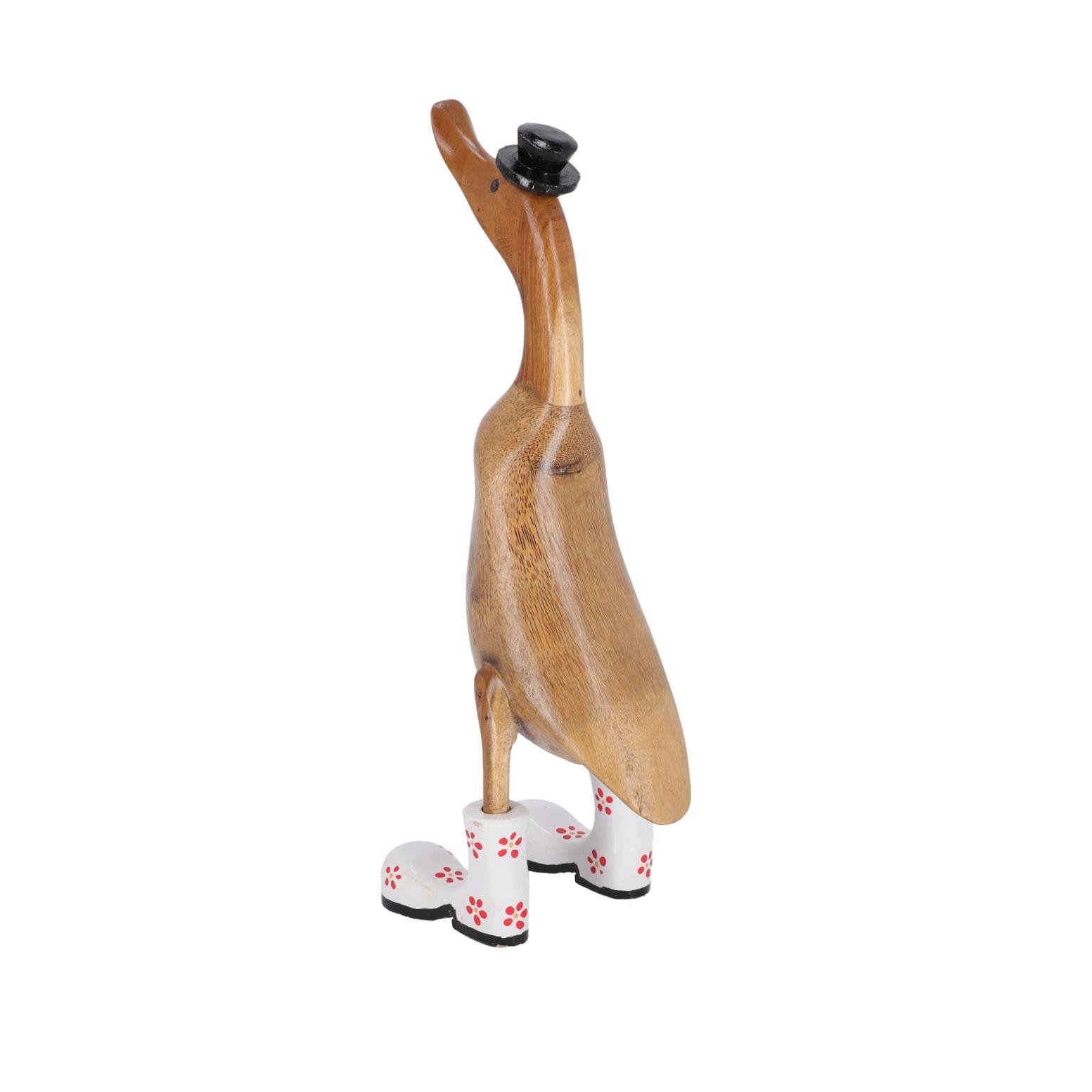 PAPERA IN LEGNO STIVALI BIANCHI FIORI ROSSI 40CM