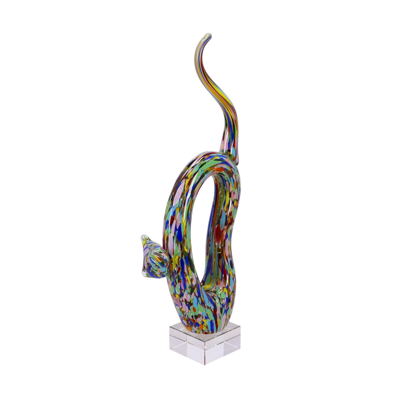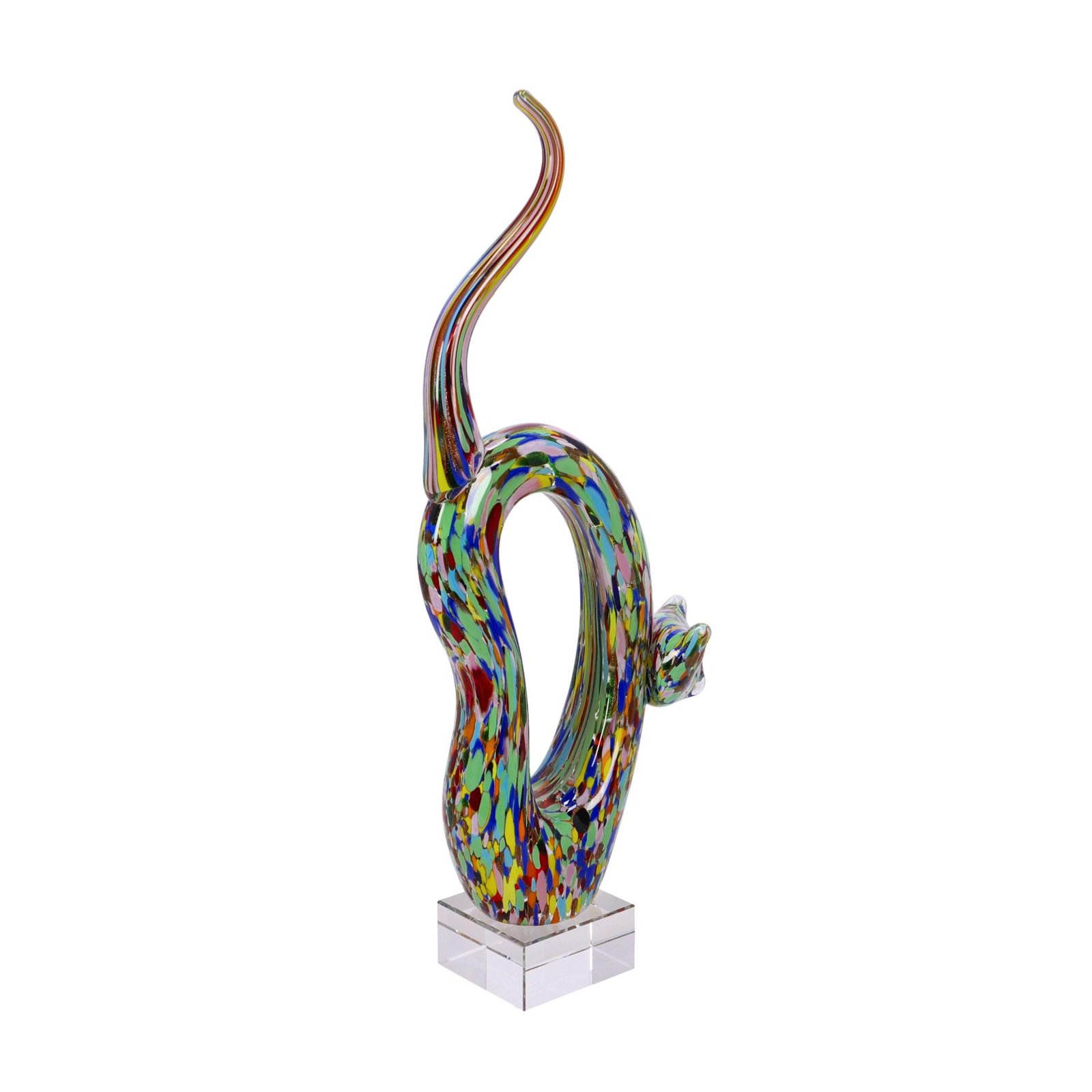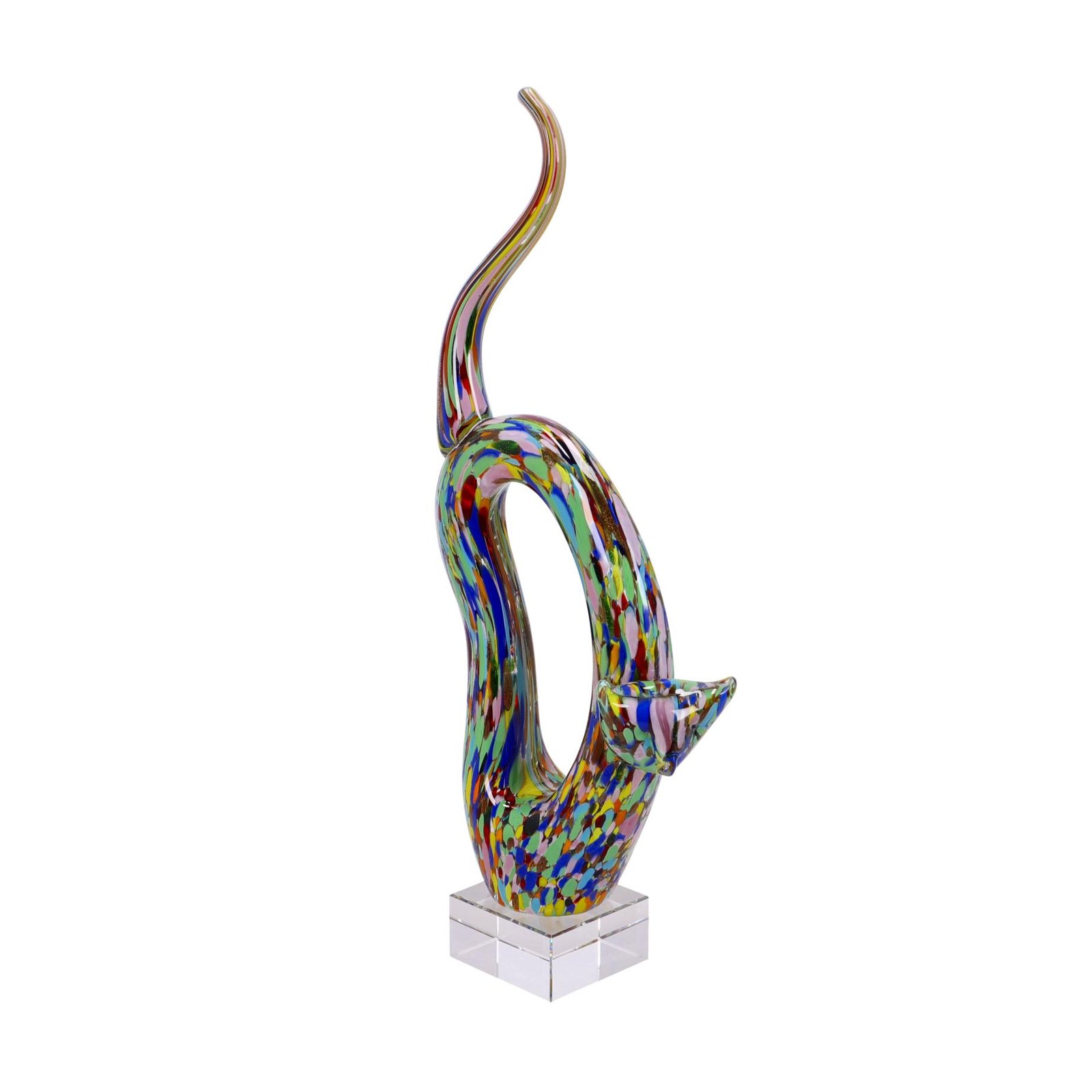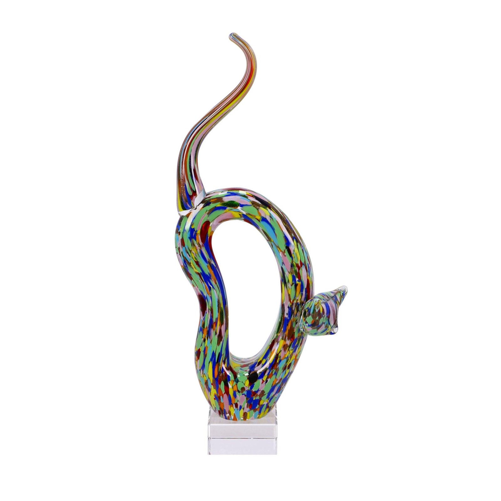 GATTO VETRO SCULTURA CM 18X8X46