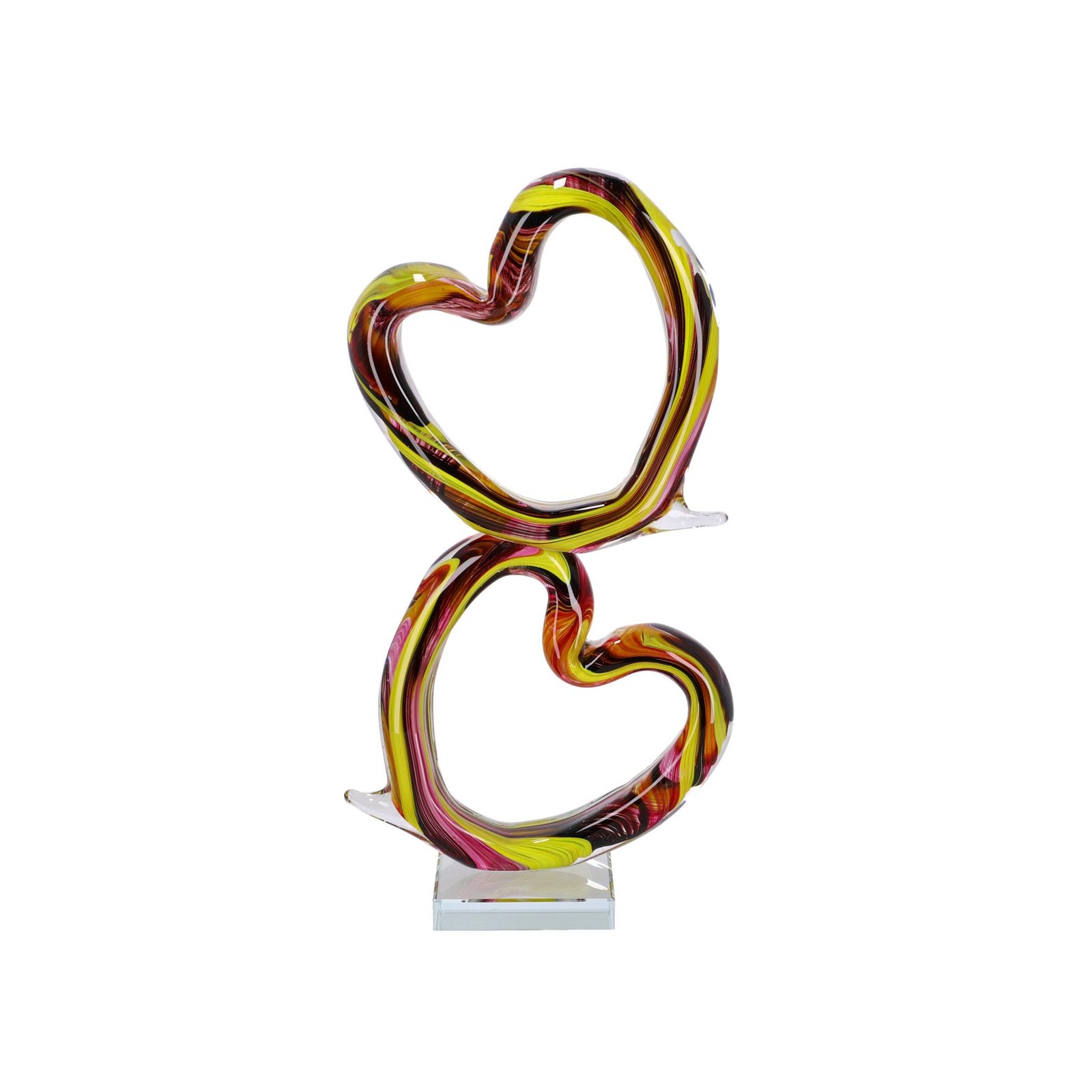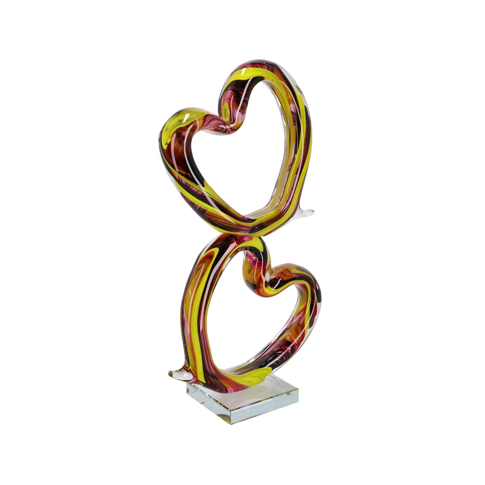 SCULTURA DUE CUORI VETRO CM 22X10X40