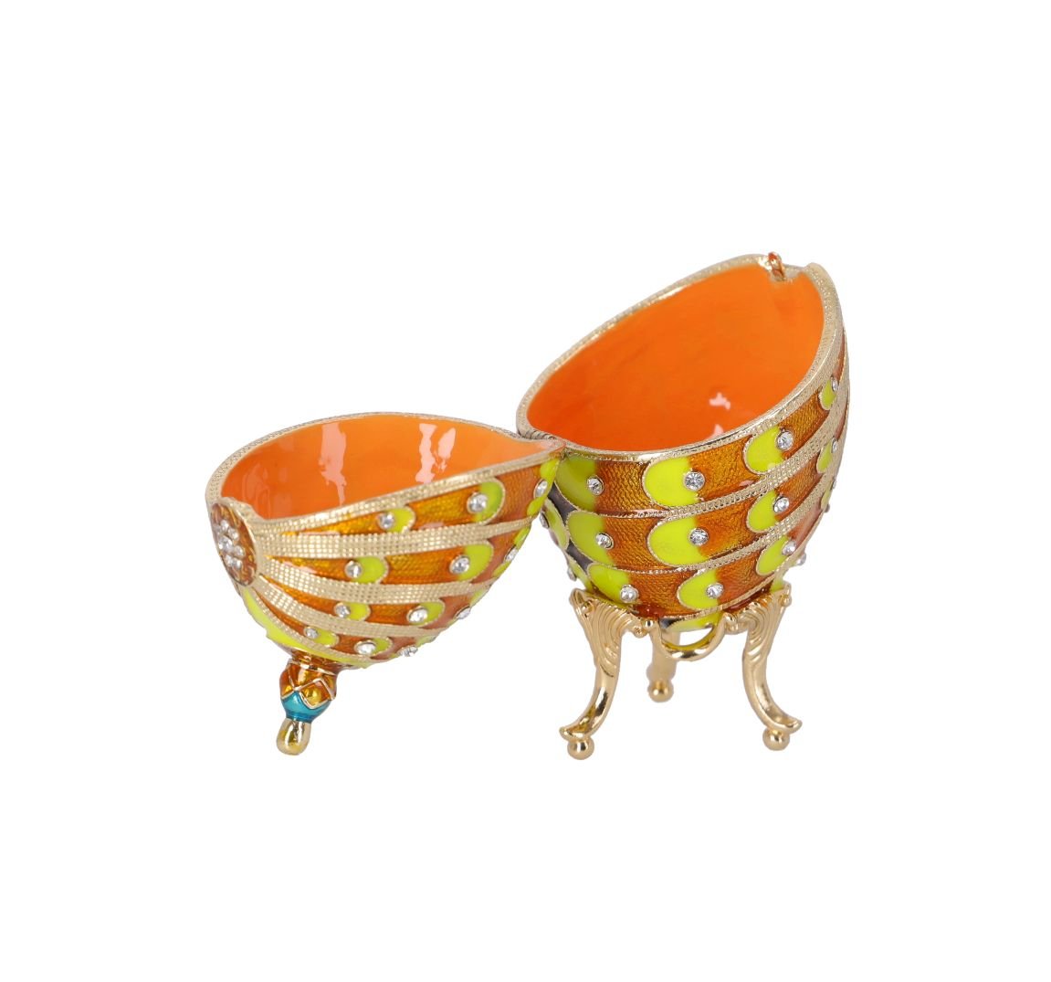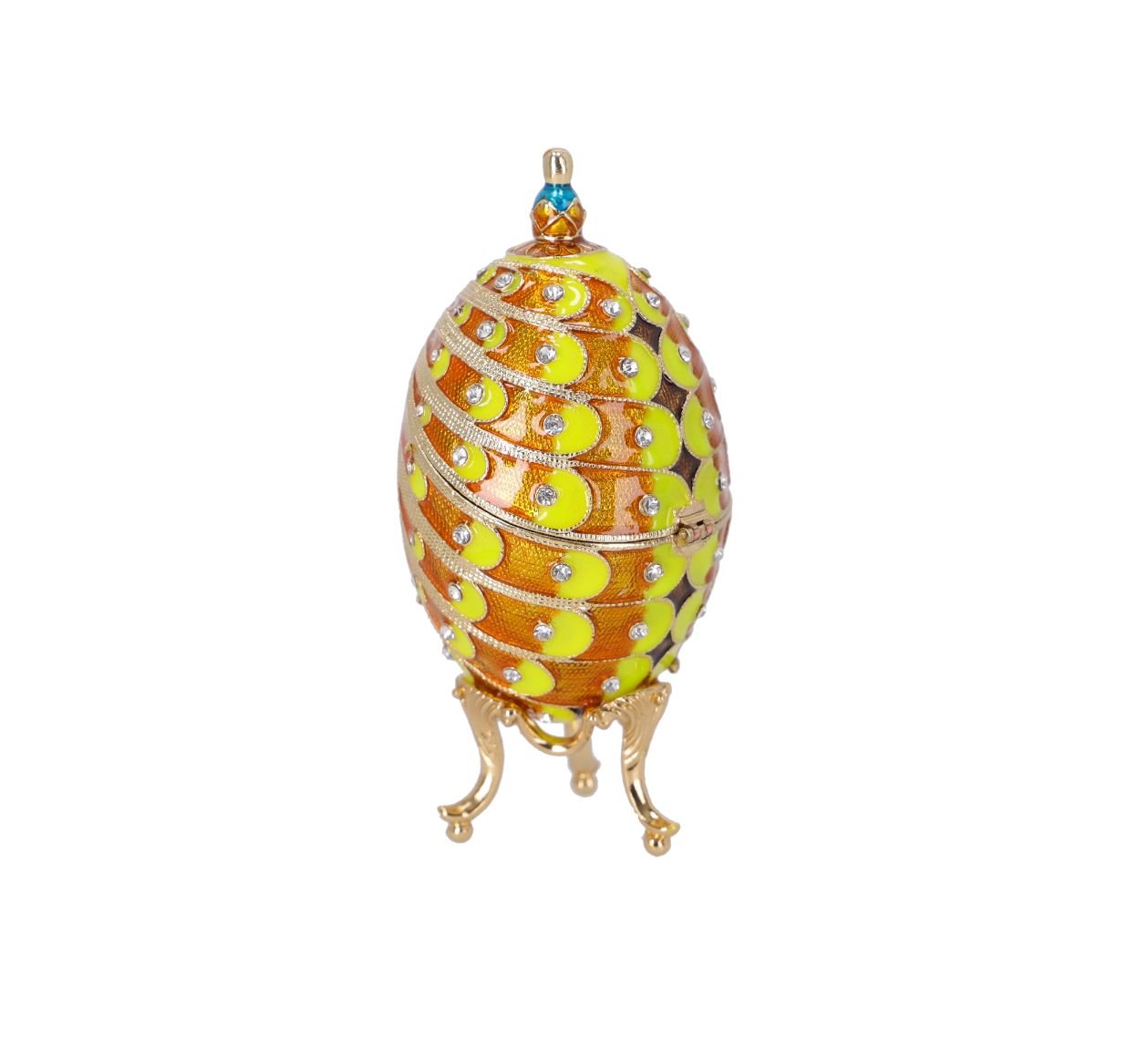 UOVO PAVONE PORTAGIOIE SMALTATO GIALLO CM6X6X15