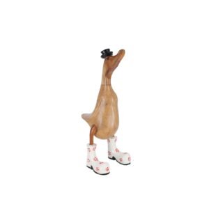 PAPERA IN LEGNO STIVALI BIANCHI FIORI ROSSI 35CM